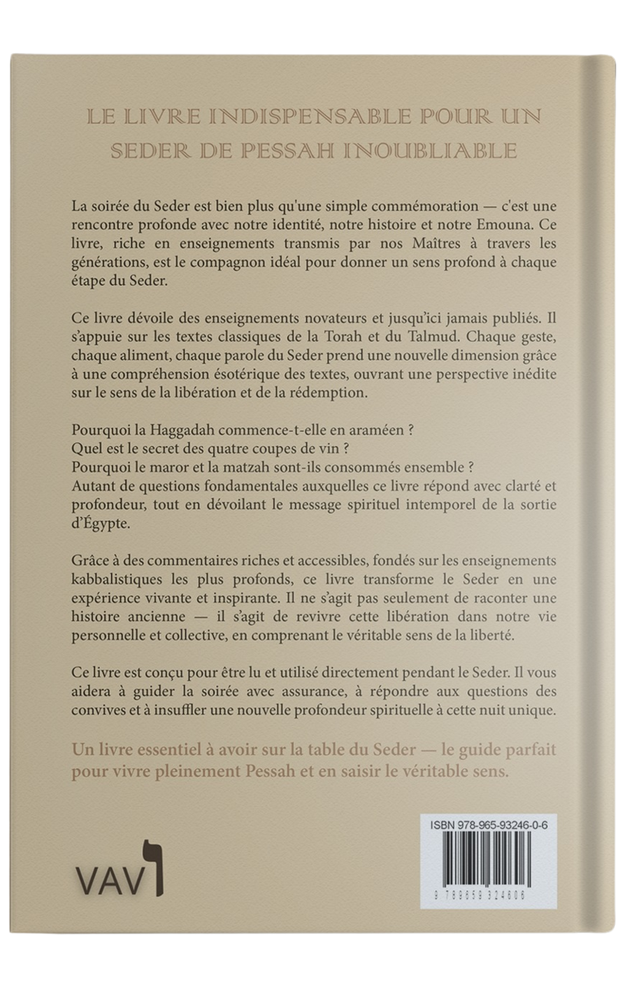 Chaque étape du Seder est expliquée dans un langage simple, ancré dans la pensée profonde de la Torah, la Kabbale, et l’histoire vivante du peuple d’Israël.